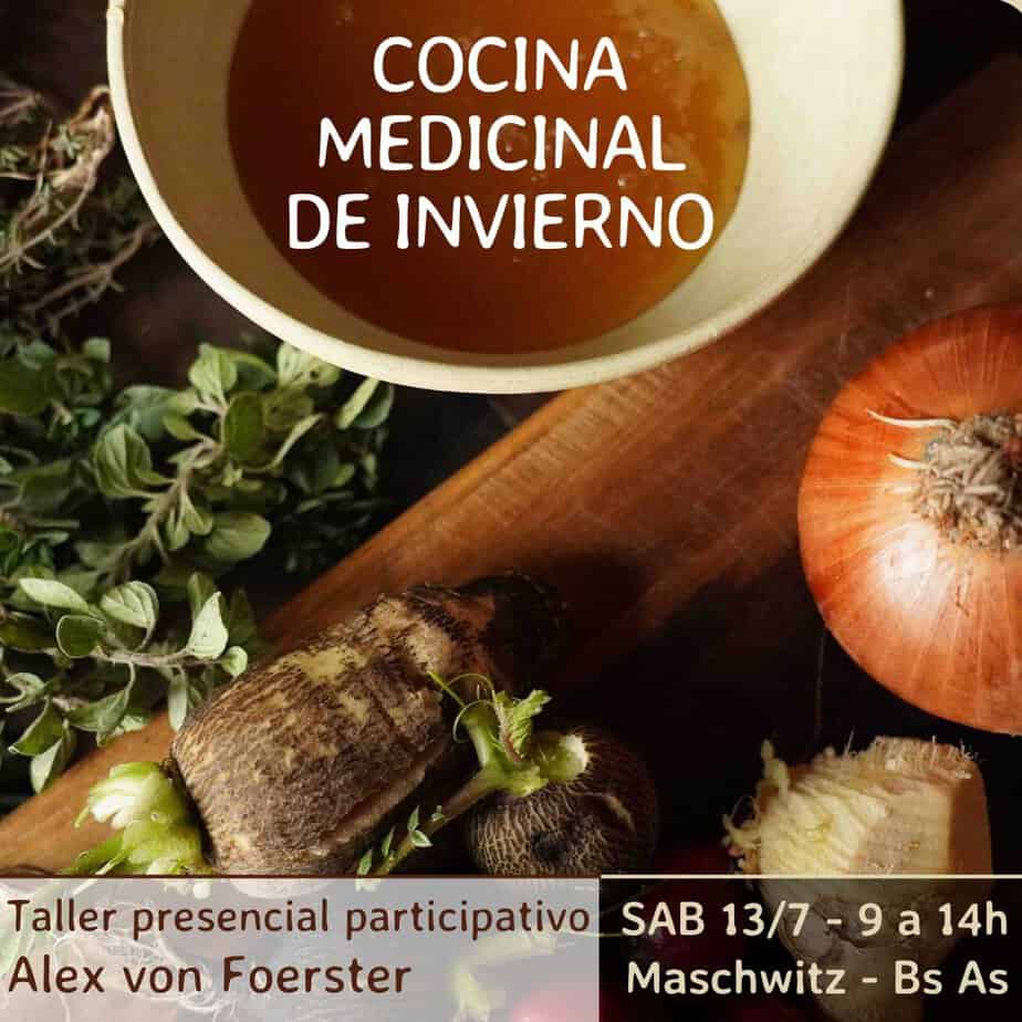 cocina, plantas medicinales y fermentos para enriquecer tu día a día- por Alex von Foerster Vivenciar y experimentar en un espacio rodeado de plantas nativas y cosmopolitas, medicinales, aromáticas y comestibles. SÁBADO 13 de JULIO CUPOS AGOSTADOS: NUEVA FECHA SÁBADO 10 de AGOSTO PROGRAMA 9 h – Bienvenida9:20 h Recorrida y recolección de plantas medicinales y hortalizas Caminar y recorrer el incipiente bosque de alimentos en plena etapa invernal, reconociendo y cosechando las hierbas y hortalizas que darán forma a nuestro almuerzo.Invitarnos a volver a la recolección como un gesto fundamental para nuestra salud. 10 h Elaboración compartida del almuerzo El jengibre, el ajo, el tomillo, los rábanos, el miso, el guiso serán los ejes de la experiencia. Cosecha, usos culinarios y medicinales de estas plantas. El guiso como preparación sabia donde interactúan múltiples aportes de diferentes grupos de alimentos. La generación de calor a través de alimentos y técnicas específicas: cereales, semillas, vegetales y especias que ayudan a contrarrestar el frío invernal. Fermentaciones medicinales en miel: ajos y jarabe de raíces y hierbas. En el trabajo grupal daremos forma al almuerzo que se compondrá de: IMPORTANTE: el guiso, uno de los ejes alimenticios de la jornada, será omnívoro. 13 h Almuerzo compartido Momento para encontrarnos en la degustación de lo que hemos elaborado. 14 h Cierre de las actividades Lugar: Maschwitz, Bs As.La jornada tiene un valor de $ 42.000.- e incluye el almuerzo Los cupos son limitados. NUEVA FECHA – 10 de AGOSTO FORMULARIO de INSCRIPCIÓN